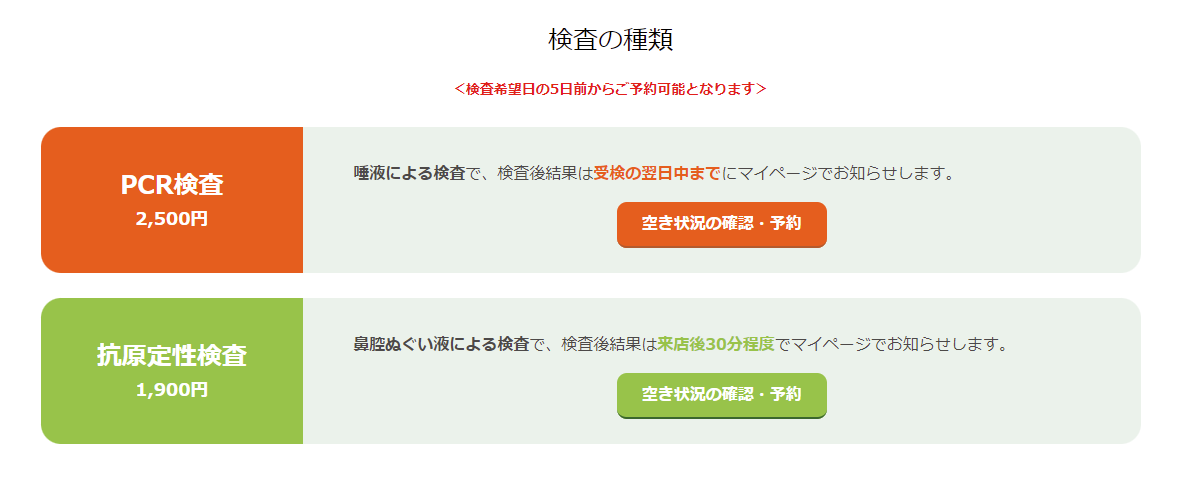 기본적으로 키노시타 그룹의 PCR검사를 방문 5일전부터 예약이 가능합니다.