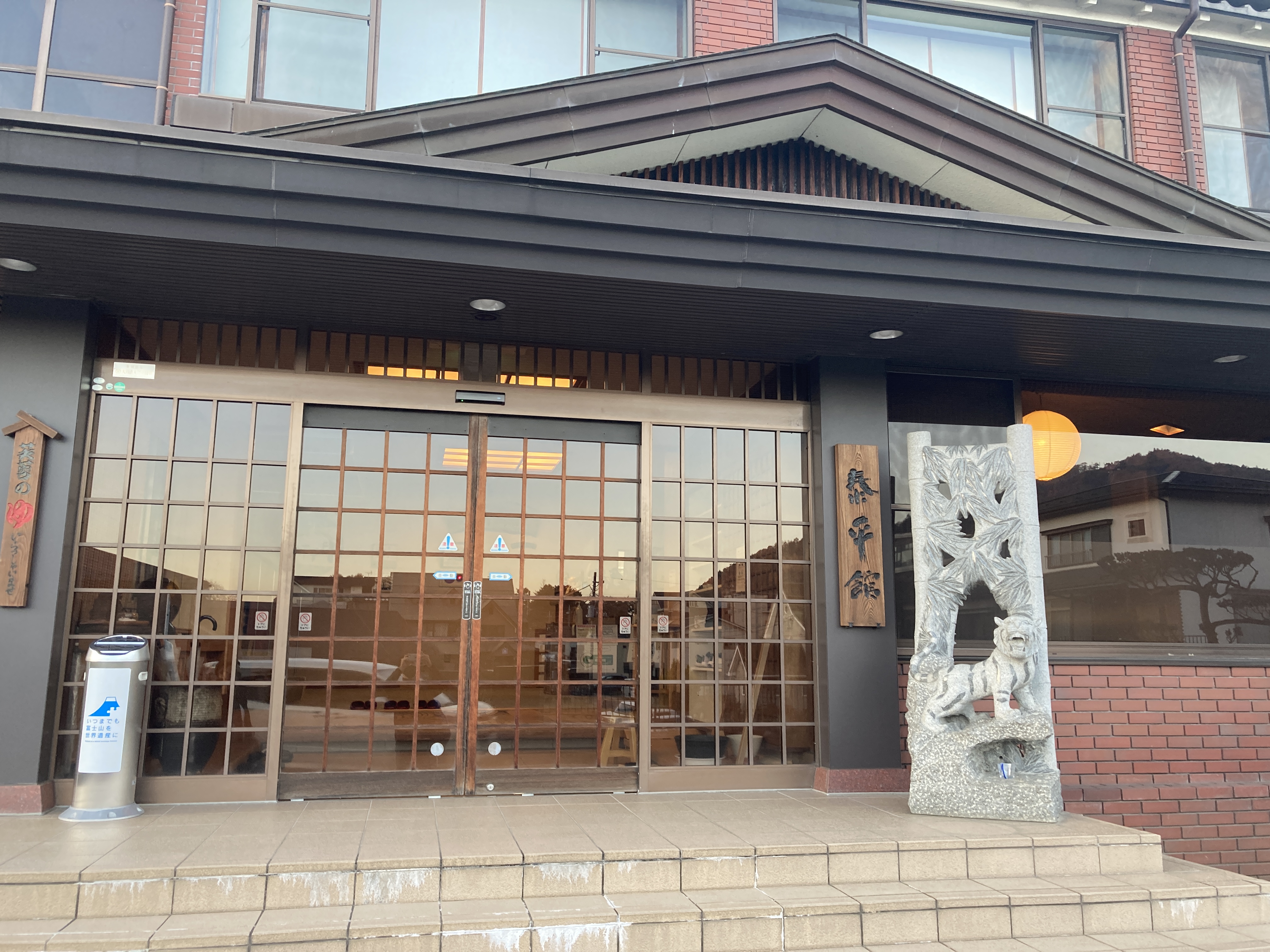 료칸의 간판 좌측 능선이 후지산입니다.