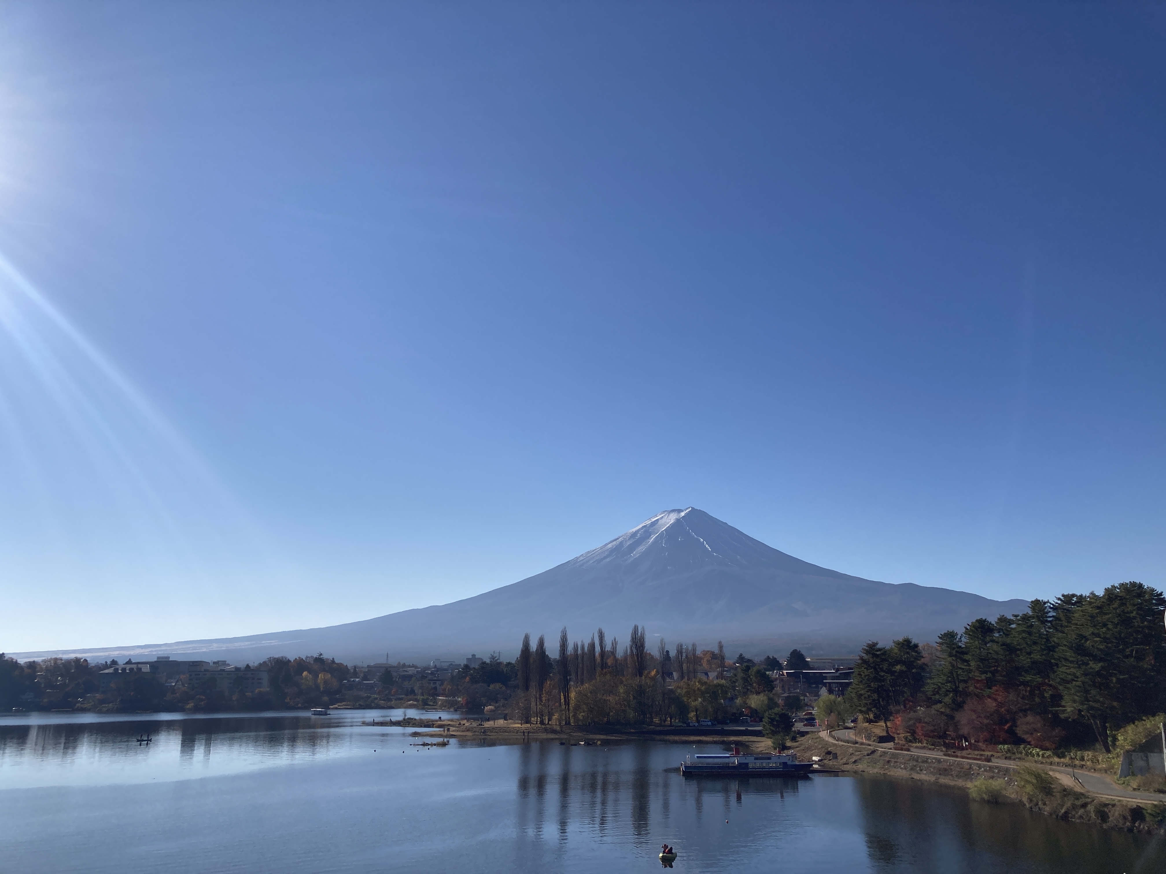호수에서 바라보는 후지산이 절경이었습니다.