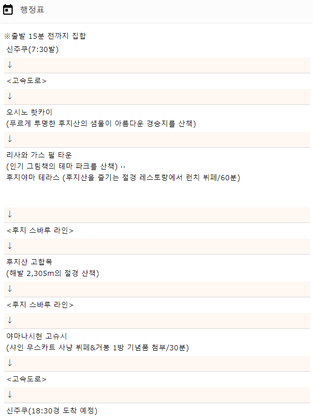 해당 투어는 후지산 고고매(중턱)가 10월 이후부터는 날씨가 추워지기 때문에 9월 말까지 진행하는 것 같았습니다.