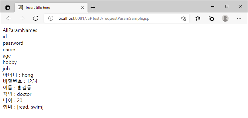취미 : <%=Arrays.toString(hobby)%><br />